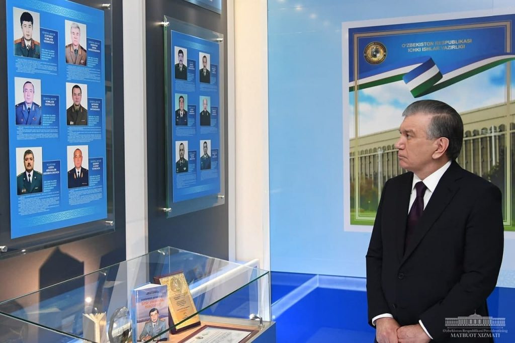 12 февраля глава государства посетил главное управление внутренних дел Ташкента, где ознакомился с деятельностью информационного мультимедийного центра, а также посетил открытие музея славы ГУВД. Об этом сообщает пресс-служба президента.