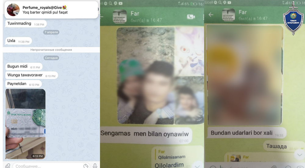 Сотрудники УВД Ангрена выяснили, что гражданин Т.С. отправлял Т.Ф. сообщения, где требовал 300 долларов, угрожая выложить ее личные фотографии в соцсети.