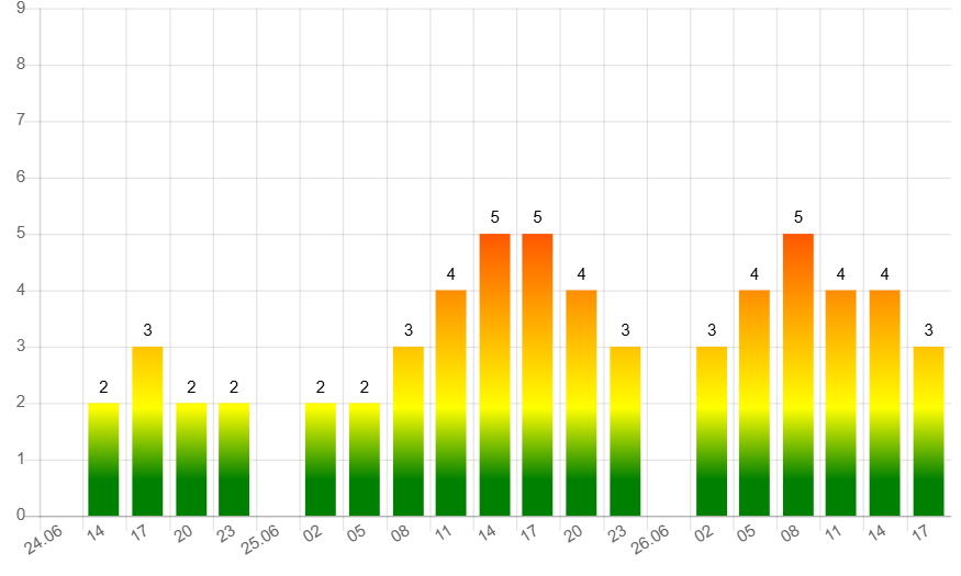 В 11:00 будут наблюдаться четырехбалльные геоудары, в 14:00-17:00 их сила возрастет до 5 баллов. После этого ожидается постепенный спад.