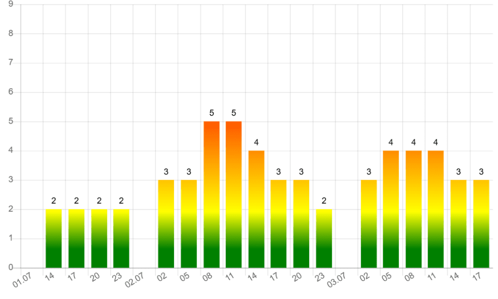 2 июля в Ташкенте ожидается магнитная буря мощностью пять баллов. Об этом говорится в данных сервиса Meteonova.