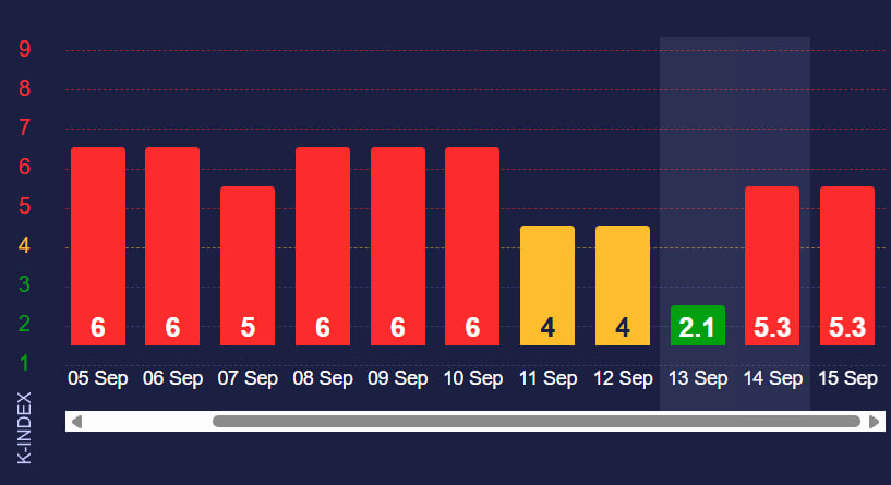 14-15 сентября на Земле будет наблюдаться магнитная буря «красного» уровня. Об этом говорится в данных Meteoagent.