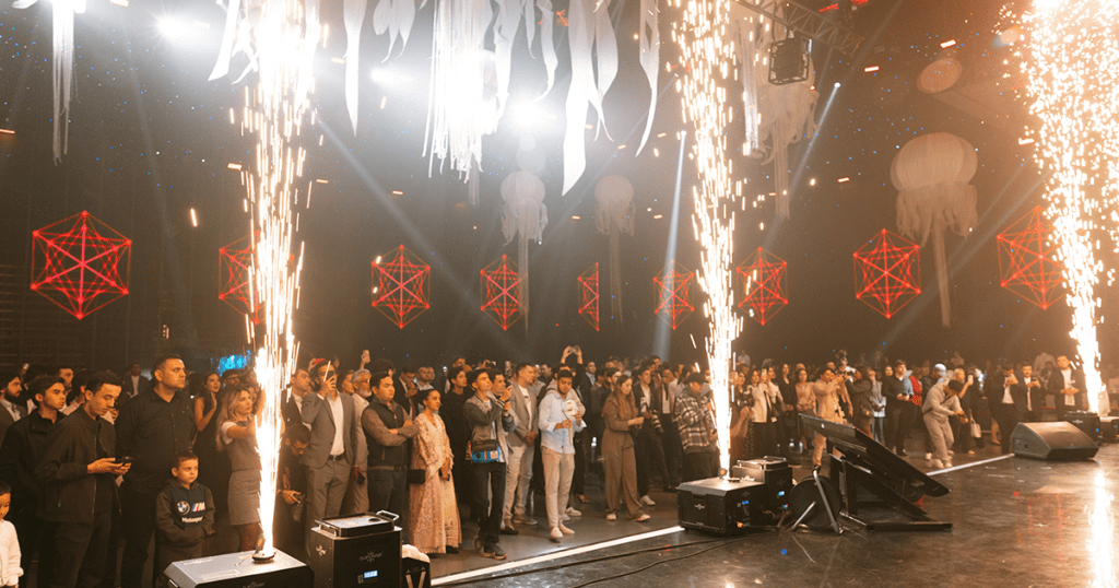 Гостей встречала неоновая атмосфера с фотозонами, зеркальными коридорами и интерактивными инсталляциями. Вечер сопровождали DJ-сеты, акробатические номера и танцевальные перформансы коллектива Reginight, а кульминацией стало эффектное открытие новой модели Chery Arrizo 8 Hybrid под световое шоу. Хедлайнером мероприятия стала популярная международная группа Morandi, выступление которой стало ярким финалом вечера и задало праздничное настроение на afterparty.