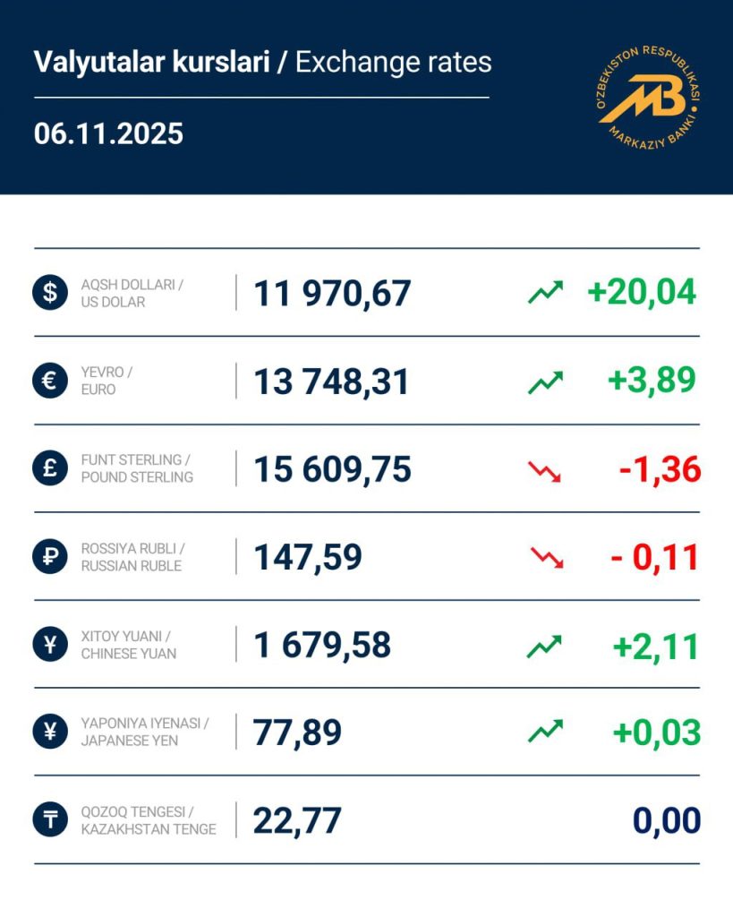 Центральный банк предоставил обновленные курсы иностранных валют в Узбекистане.