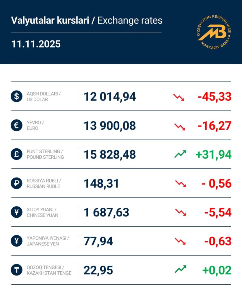 Центральный банк предоставил обновленные курсы иностранных валют в Узбекистане.