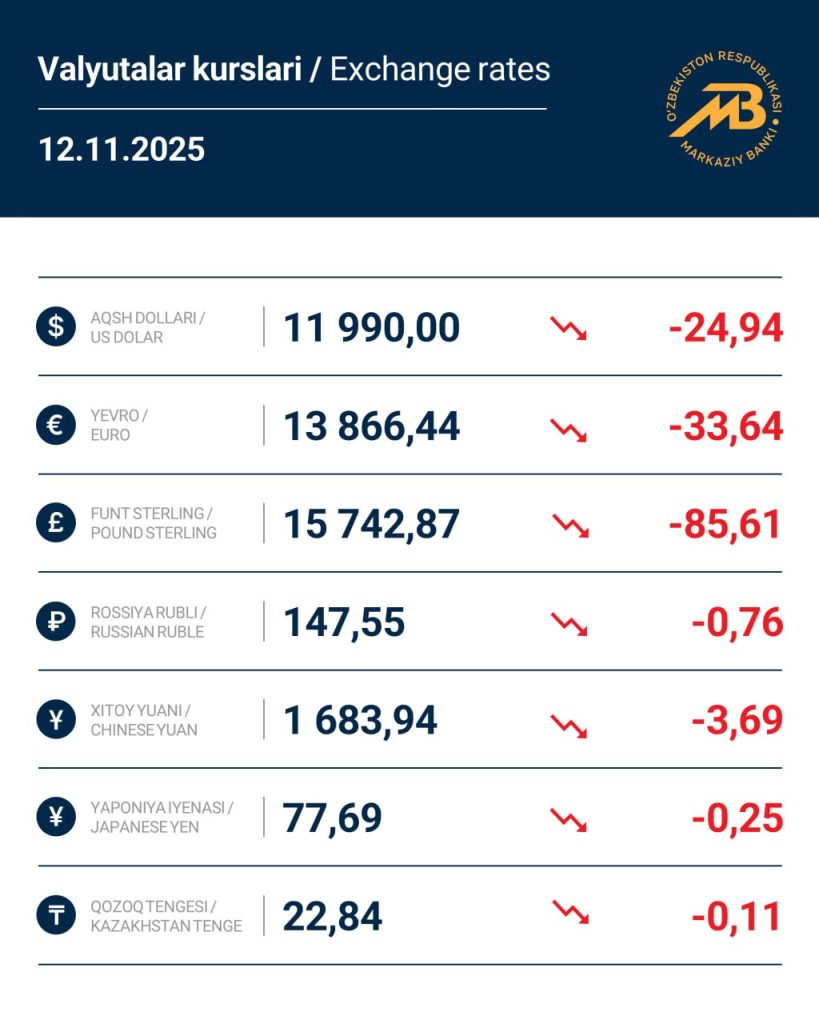 Центральный банк предоставил обновленные курсы иностранных валют в Узбекистане.