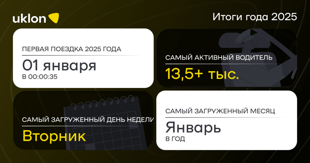 Uklon поделился итогами 2025 года. Компания рассказала, как пользователи передвигались с Uklon, сколько времени провели в поездках и какие рекорды установили райдеры и драйверы за год.