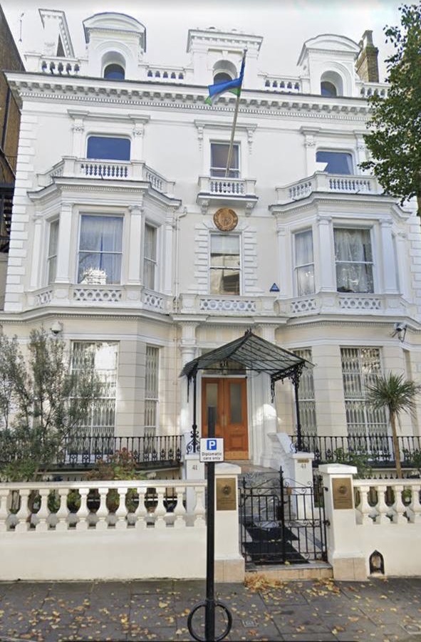 Посольство Узбекистана в Соединенном Королевстве Великобритании и Северной Ирландии находится в Лондоне по адресу 41 Холланд парк. Дипломатические отношения между странами начали развиваться с 1992 года.