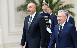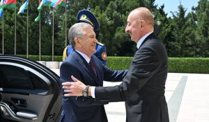 После совместного фотографирования началась встреча президентов Узбекистана и Азербайджана в узком формате.