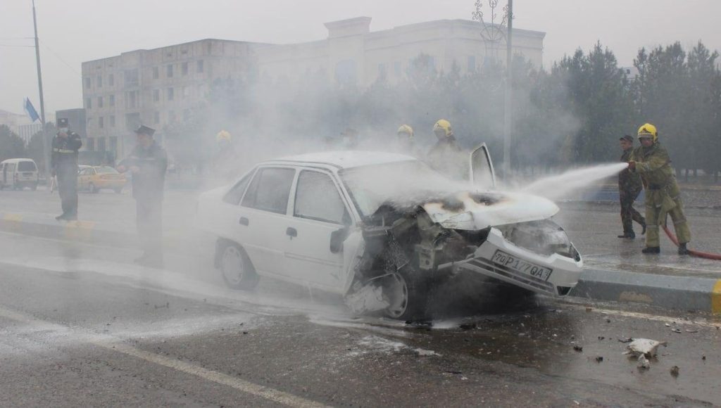 В течение нескольких минут на проспект Мустакиллик, где горел автомобиль, прибыла бригада пожарных. Специалисты оперативно потушили возгорание.