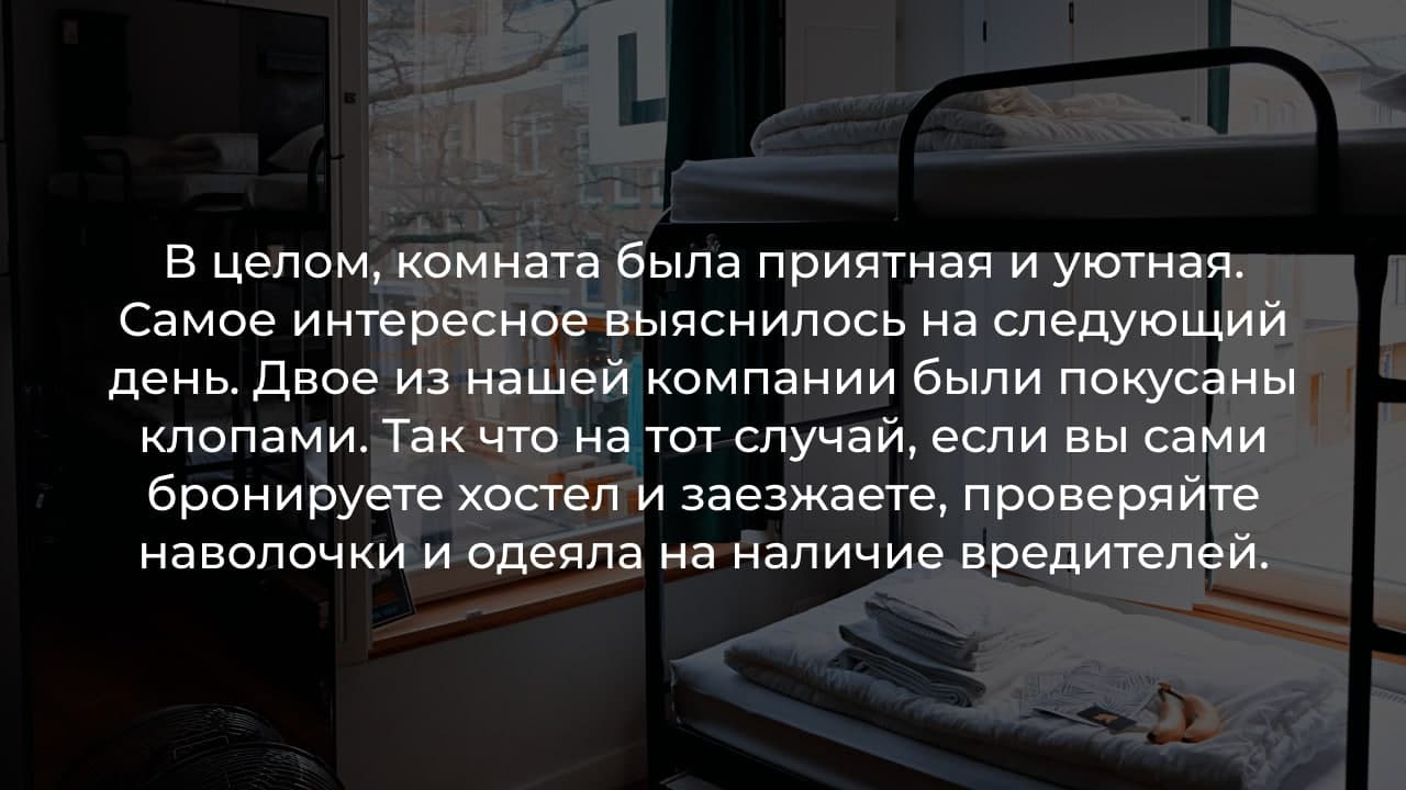 Помимо этого, есть отличный вариант для ночлега — Airbnb.com. На этом сайте вы можете забронировать себе целую квартиру. Если вас едет несколько человек, так может выйти даже дешевле чем номер в хостеле или гостинице. Самое главное в вопросах ночлега — это разобраться и подсчитать, где будет вам комфортнее жить и за что будет удобнее платить. Обязательно проверяйте хостелы на наличие Wi-Fi.