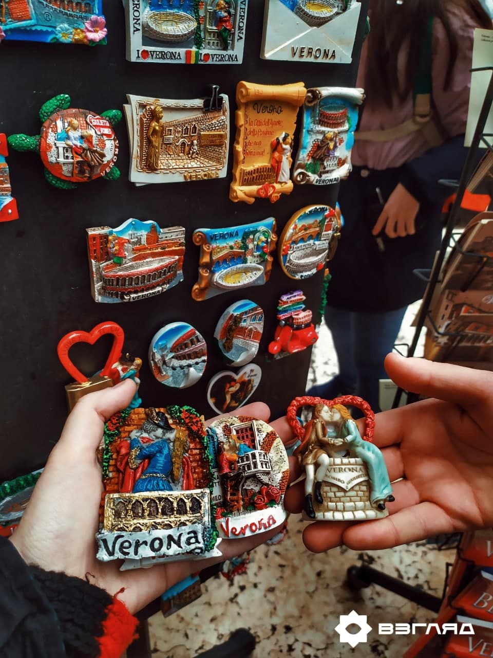 По дороге в самый центр встречается множество магазинов для туристов, где можно купить различные магниты, шарфики, футболки или шапки. В этих же магазинах мы все прикупили магниты с изображениями Ромео и Джульетты. Один магнит обошёлся в 2 евро (26,000 сумов). Помимо этого, мы в Вероне впервые встретили магазин Disney, где застряли примерно на час. Здесь каждый сможет найти что-то интересное для себя, вне зависимости от того, сколько вам лет. Магниты, чашки, костюмы, куклы — в этом магазине можно встретить абсолютно любого персонажа диснеевского мультика. Я в свою очередь купила чашку с персонажем Блиц из мультика «Зверополис» за 7 евро (90,000 сумов). Наверное, странная покупка для Италии, зато отличная память из диснеевского магазина.