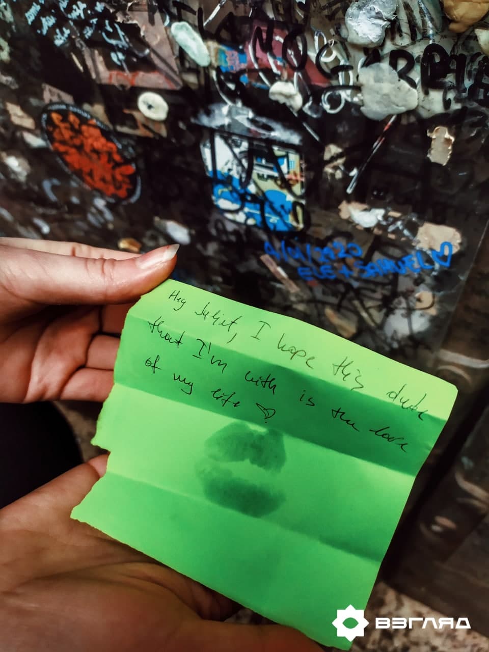 Возле балкона также прикрепляют различные замочки-сердечки, где возлюбленные оставляют инициалы своих имён. Помимо этого, в стенах дома Джульетты действительно можно оставить письмо о своей истории или проблеме, как в фильме «Письма к Джульетте». Некоторые мы даже вытаскивали, читали и просовывали обратно меж каменными стенами. Большинство из писем на итальянском, но мы смогли найти несколько на английском языке.