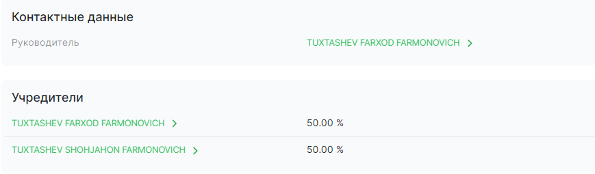 Тухташеву принадлежит 50% доли в этой компании. Другие 50% принадлежат его родному брату Тухташеву Шохжахону.
