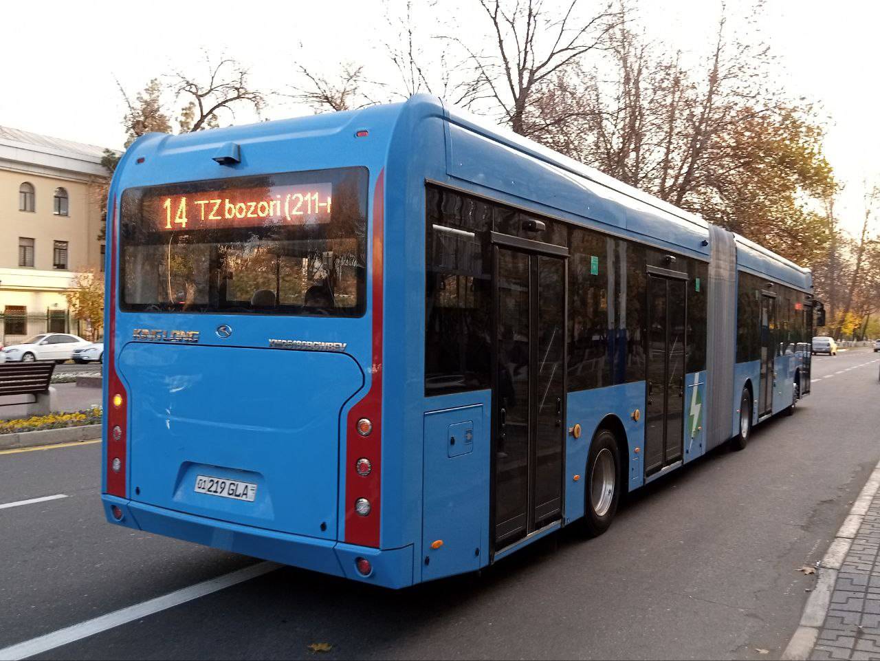 С сегодняшнего дня, 6 декабря, эти электробусы-гармошки вышли на маршрут № 14 ТТЗ — Автовокзал Ташкент.
