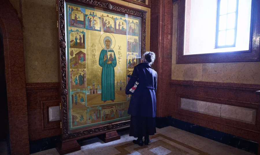 На время внесения изменений, на месте большой иконы святой Матроны с житием повесили ее образ меньшего размера.