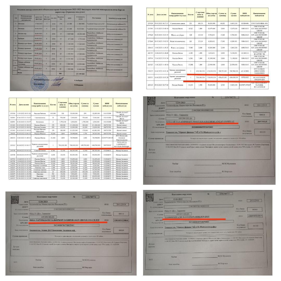 Выявлено, что управление приобрело черенки декоративного растения у «ООО GULLAR VA LANDSHAFT» на сумму 698 700 000 сумов, у «ООО NASIRDINOVA MUXAYYOXON ODILJON QIZI» за 698 650 000 сумов и у «ООО TAXIROV ABDULVOXID VASILOVICH» за 598 700 000 сумов.
