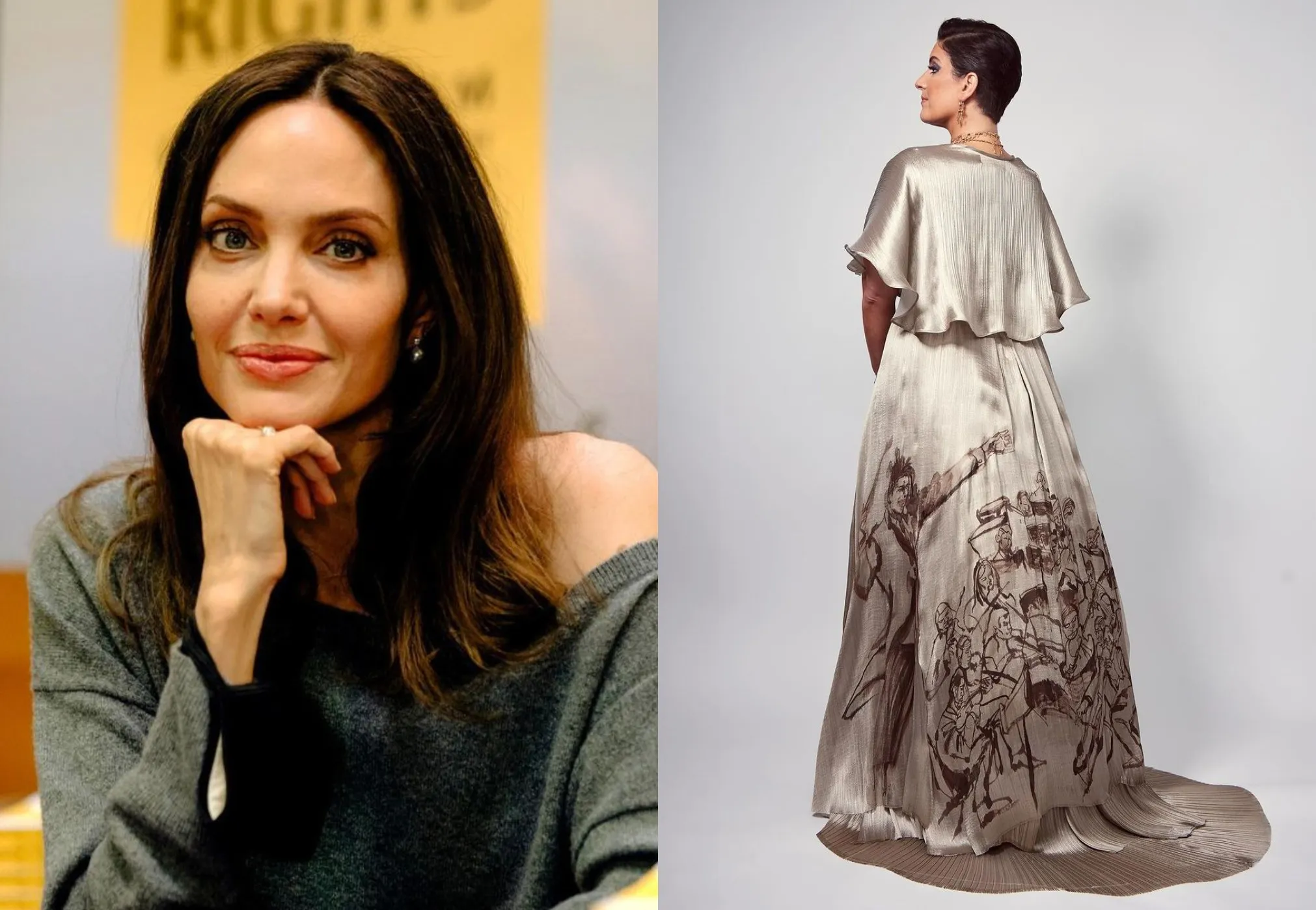 «Мне хотелось создать образ, вдохновленный творчеством Сулейки и ее любовью. Она художница, поэтому было правильно использовать ее платье в качестве холста», — сказала Анджелина Джоли.