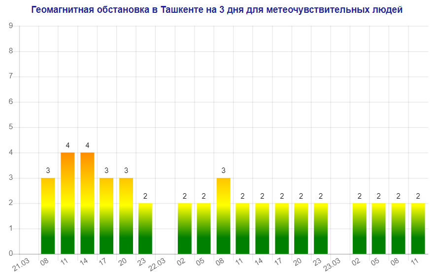 21 марта в Ташкенте наблюдается магнитная буря мощностью четыре балла, следует из данных сервиса Meteonova.
