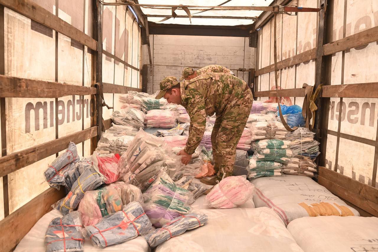 В 15 крупногабаритных грузовых автомобилях были размещены продукты питания, женская, детская и мужская верхняя одежда, одеяла, одеяла, подушки, средства гигиены, палатки со специальным оборудованием, комплекты резиновых лодок и другие необходимые товары.