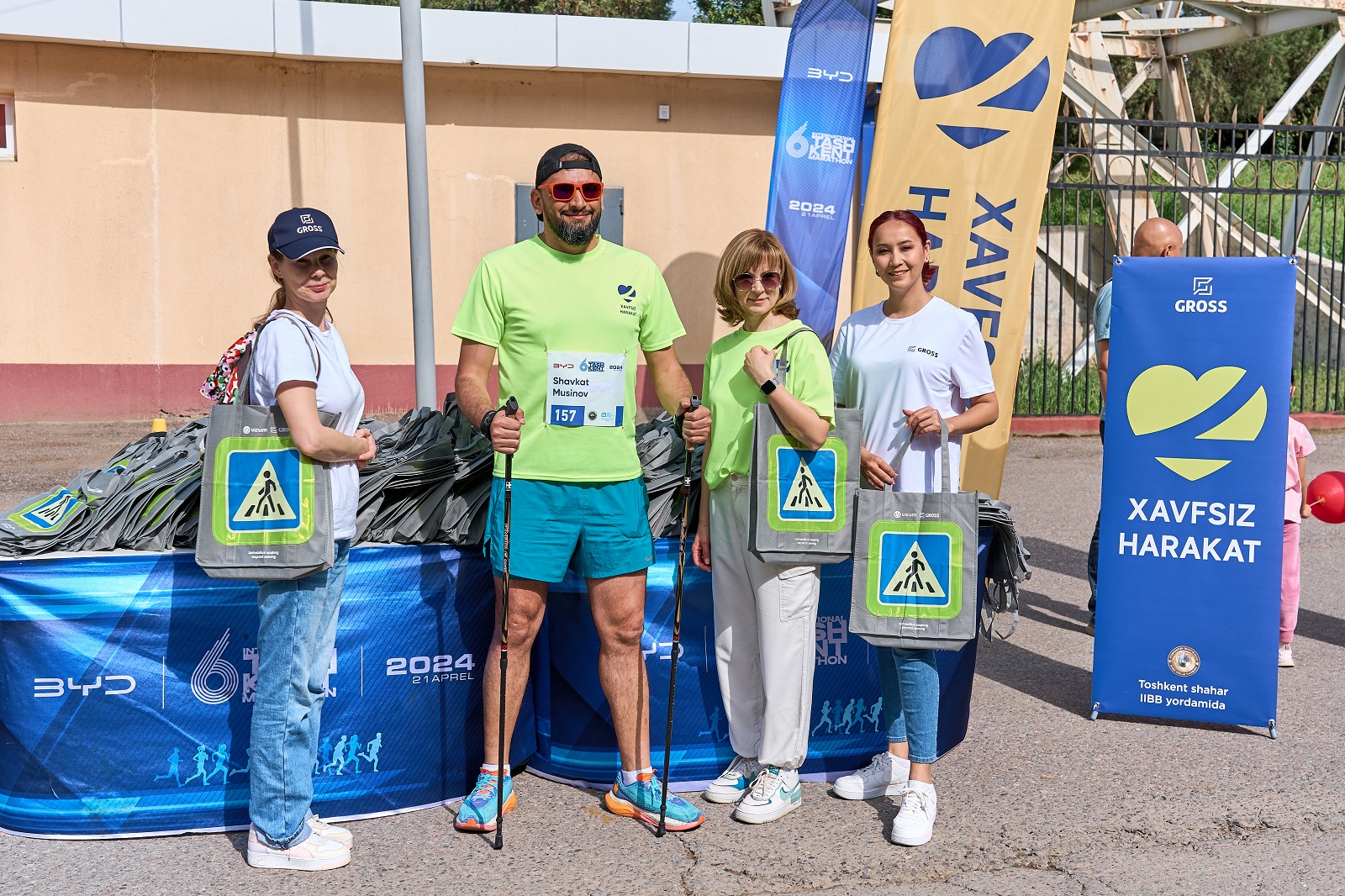 В забегах 20 апреля приняли участие более 300 человек от 7 до 70 лет, бегуны с инвалидностью и любители скандинавской ходьбы. Шавкат Мусинов вручил всем участникам забега сумки-шопперы с изображением знака пешеходного перехода и светоотражающими элементами. Сумки, помогающие пешеходам быть заметнее для водителей, были разработаны специально для проекта Xavfsiz Harakat, который реализован компанией GROSS в партнерстве с ГУВД города Ташкента, Агентством по делам молодежи Республики Узбекистан, экосистемой Uzum.