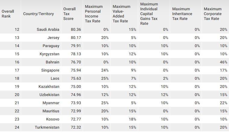 Как мы писали выше, Узбекистан в этом рейтинге занимает 20-е место, где НДС составляет лишь 12%.