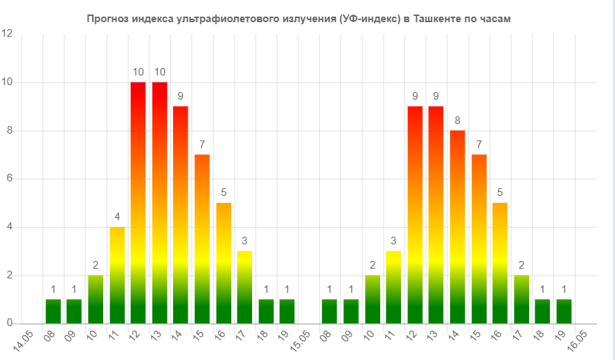 Согласно данным Meteonova, в Ташкенте ожидается экстремальный уровень ультрафиолетового излучения.