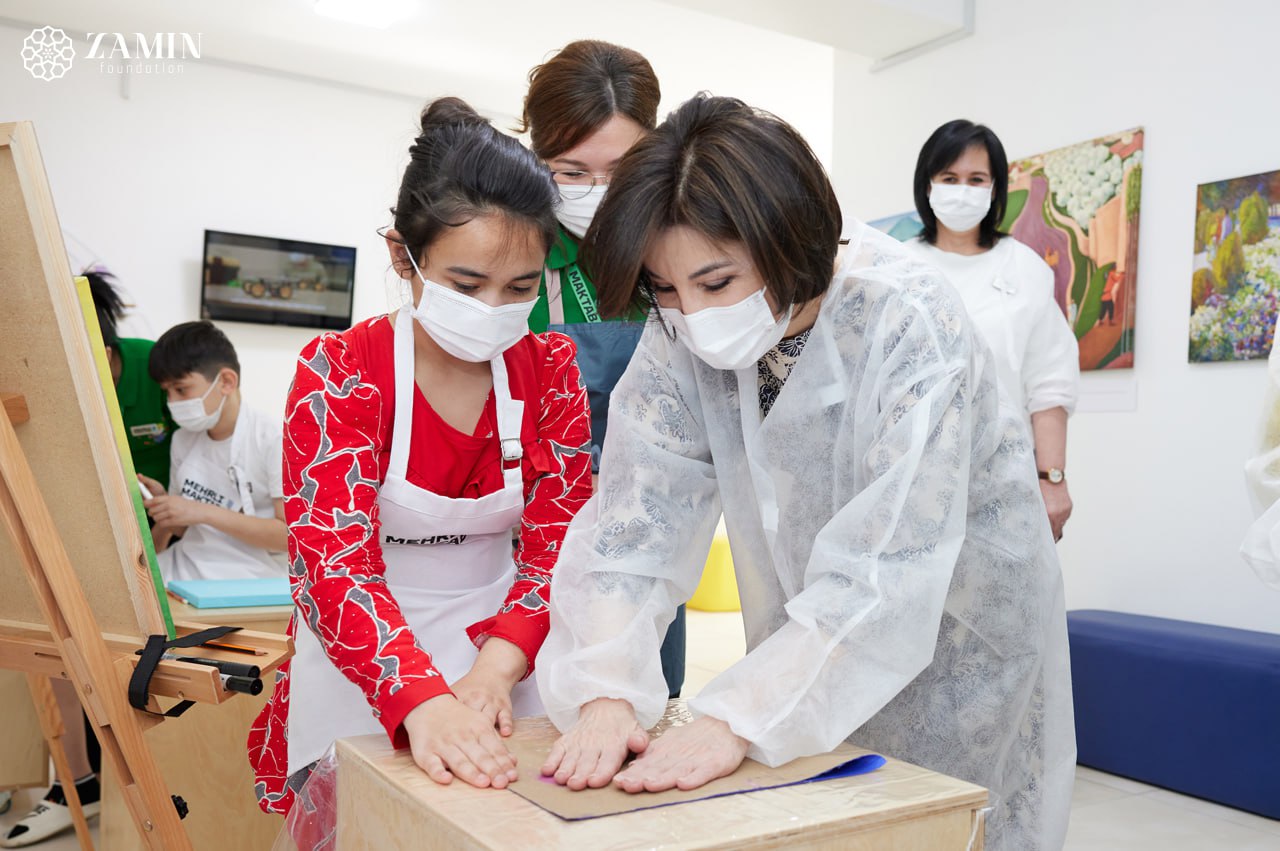 Председатель Попечительского совета Фонда Zamin отметила благоприятную образовательную среду Mehrli maktab, тепло пообщалась с ребятами и искренне поблагодарила педагогов, участвуя в развивающих адаптационных занятиях с учениками.