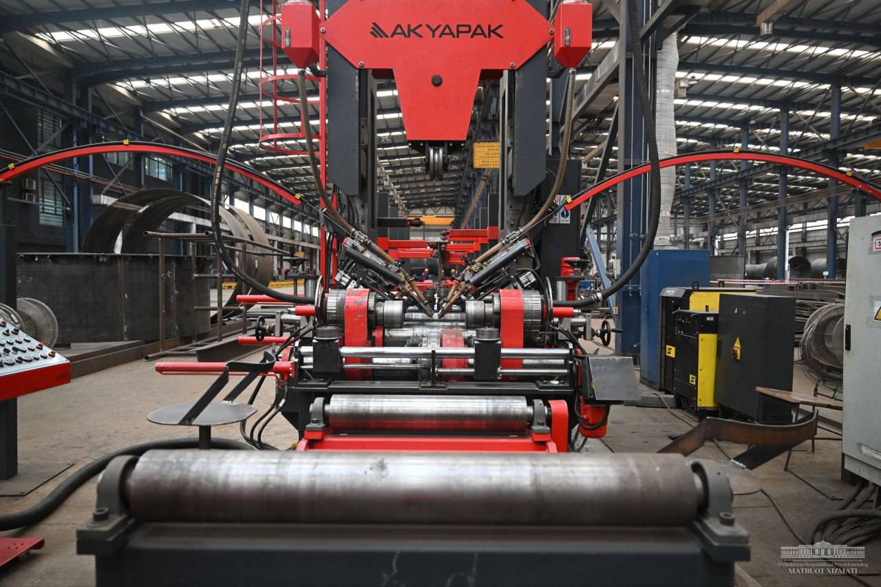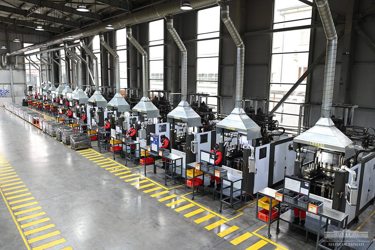Глава государства ознакомился с производственным процессом завода, побеседовал с работниками. В шоуруме предприятия он осмотрел образцы готовой продукции.