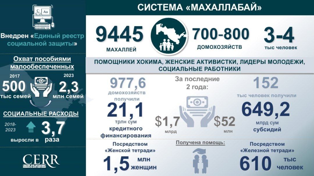 С момента создания Министерства по борьбе с бедностью в 2020 году одной из самых значительных реформ стала система «Махаллабай», направленная на решение социальных и экономических проблем на уровне местных сообществ. В рамках этой программы были созданы новые категории чиновников: «помощники хокима», «женские активистки», «лидеры молодежи» и «социальные работники».