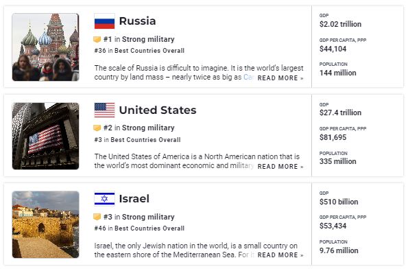 1 и 2 места заняли вооруженные силы Российской Федерации и США соответственно.