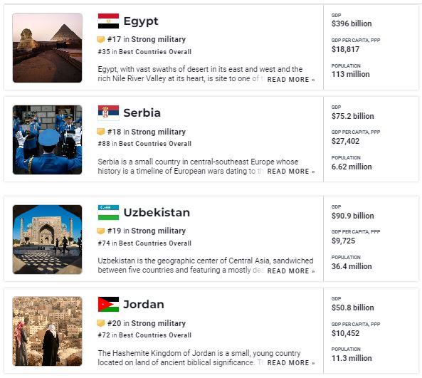 Армии Узбекистана и Казахстана вошли в 30 сильнейших армий мира, заняв 19 и 22 места соответственно.