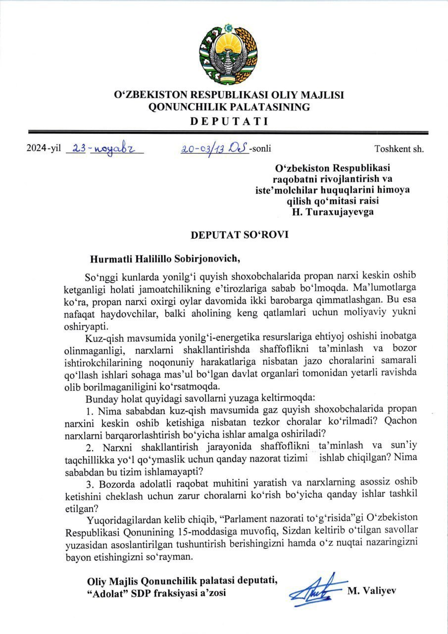 Отметим, что это не первый случай резкого повышения цен на пропан. В прошлом году цены также увеличились, что вызвало недовольство населения. Однако тогда не было направлено столько запросов в различные организации, как сейчас.