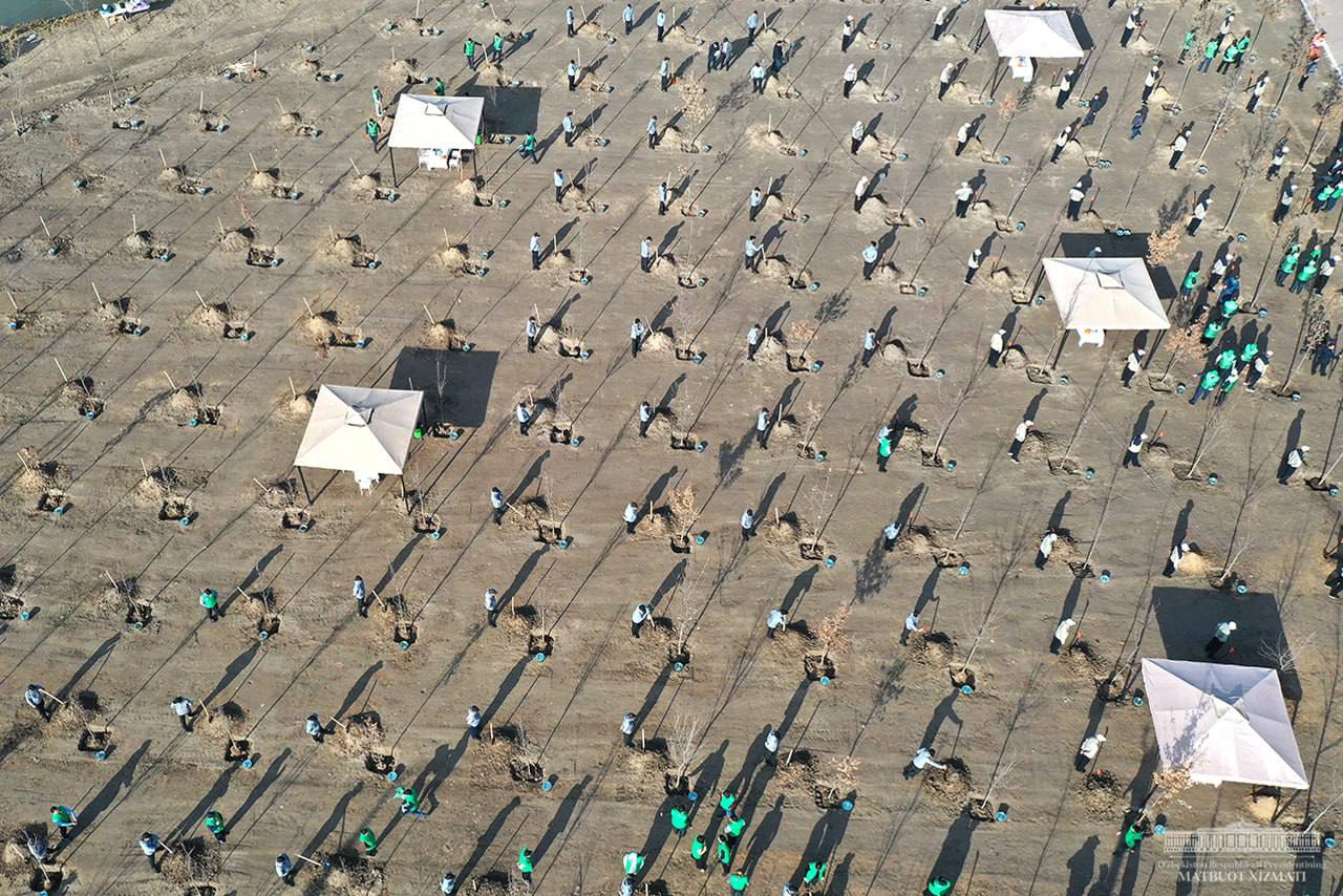 Весной было посажено 138 миллионов саженцев. Министерства и хокимияты создали 257 парков. Вокруг крупных промышленных предприятий и мусорных полигонов также высаживаются деревья, создаются зелёные пояса.