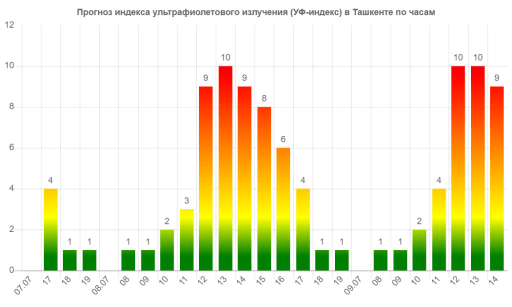 8 va 9-iyul kunlari Toshkentda xavflilik darajasi yuqori bo‘lgan ultrabinafsha nurlanish kuzatiladi. Bu haqda Meteonova ma’lumotlarida aytiladi.
