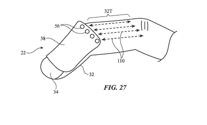Шу билан бир қаторда, Apple «фойдаланувчининг бармоғи қурилган муҳитда юзалар билан ўзаро алоқада бўлганида маълумотларни тўплаш учун ишлатилиши мумкин бўлган тақиладиган қурилмани» таклиф қилади.