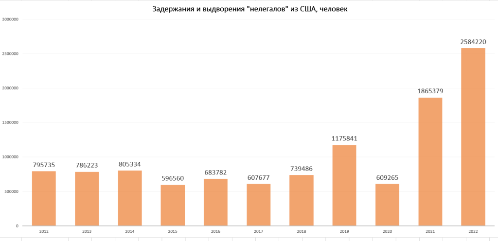 Шундай қилиб, статистик маълумотларга кўра, 2012 йилдан 2022 йилгача 11 миллион 249 минг 502 нафарга яқин киши ҳибсга олинган ва мамлакатдан чиқариб юборилган. Уларнинг 4,5 миллиони фақат 2021-22 йилларда ноқонуний муҳожирлардир.