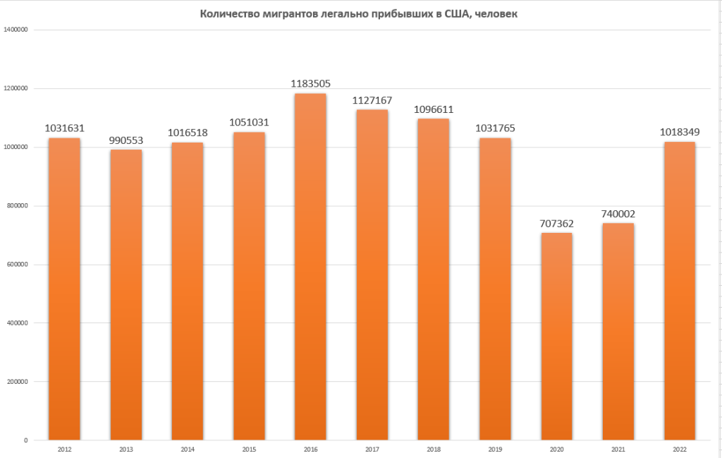 Ҳар йили бир миллионга яқин муҳожир мамлакатга қонуний равишда киради.