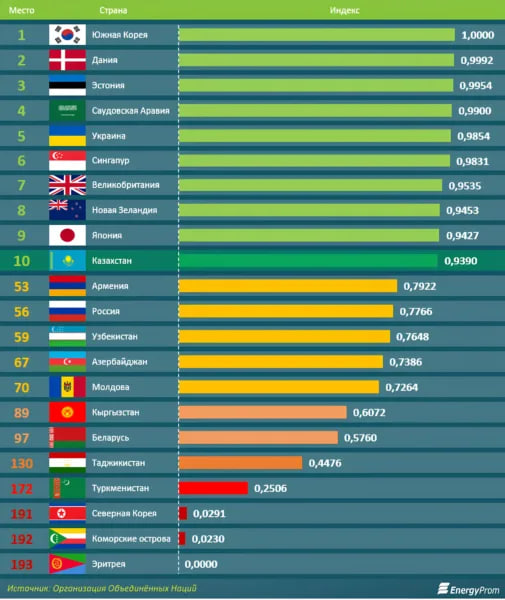 Online Service Index maʼlumotlariga koʻra, Qozogʻiston Internet orqali koʻrsatiladigan davlat xizmatlarining mavjudligi va sifatini baholovchi onlayn xizmatlar indeksi boʻyicha dunyoning eng yaxshi oʻntaligiga kiradi.
